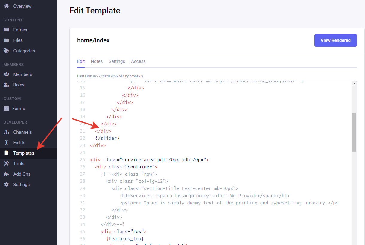 Редактирование шаблонов